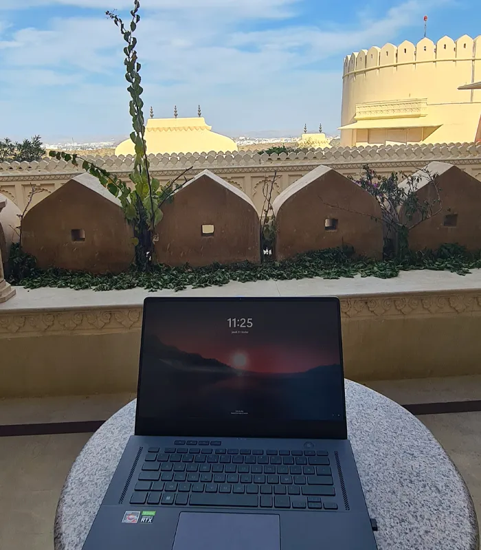 L’autonomie est incroyable. Je peux l’utiliser plusieurs jours sans penser à la batterie et ça change complètement ma manière de travailler en voyage. Côté puissance, je suis largement couvert. Que ce soit pour retoucher mes photos, préparer des visuels ou rédiger mes articles, je suis à des années-lumière de réussir à le faire broncher.